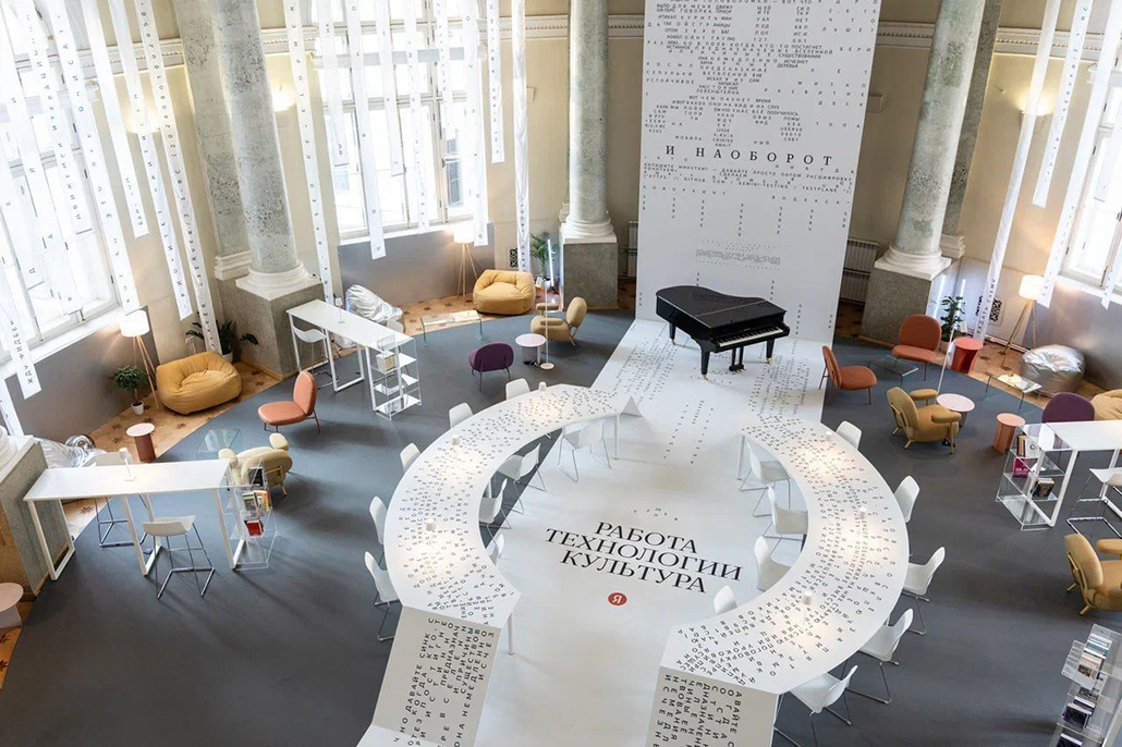 «Яндекс» открыл летний коворкинг на 65 рабочих мест под куполом ротонды библиотеки имени В. В. Маяковского в Доме голландской реформатской церкви на Невском проспекте в Санкт-Петербурге.