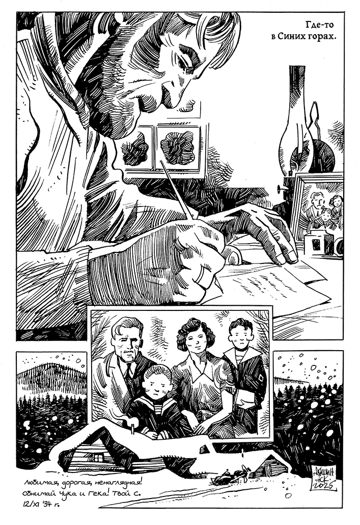 В 2025 году мэтр отечественного комикса Аскольд Акишин создал по мотивам гайдаровского текста графическую историю. С разрешения Аскольда и издательства Alpaca мы публикуем фрагменты этого комикса.